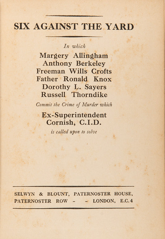Vendor:ALLINGHAM, Margery; BERKLEY, Anthony; CROFTS, Freeman Wills; KNOX, Fr. Ronald; SAYERS, Dorothy L.; THORNDIKE, Russell.SoldRegular price £2,350Regular priceUnit price / perSale price £2,350 -