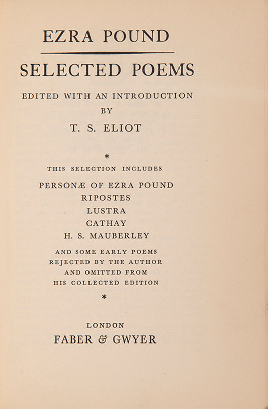 Vendor:POUND, Ezra; ELIOT, T. S. (introduction)SoldRegular price £1,250Regular priceUnit price perSale price £1,250 -