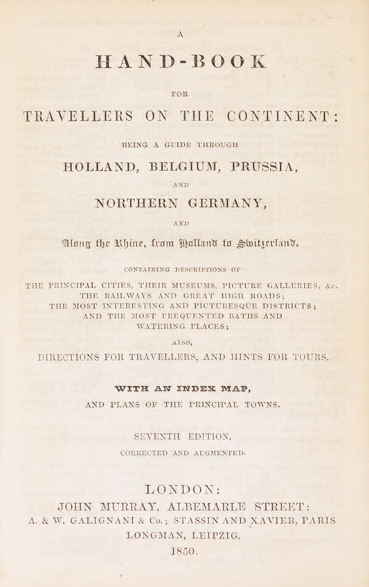 Continent. Handbook for Travellers on the Continent: Being a Guide Through Holland, Belgium, Prussia, and Northern Germany