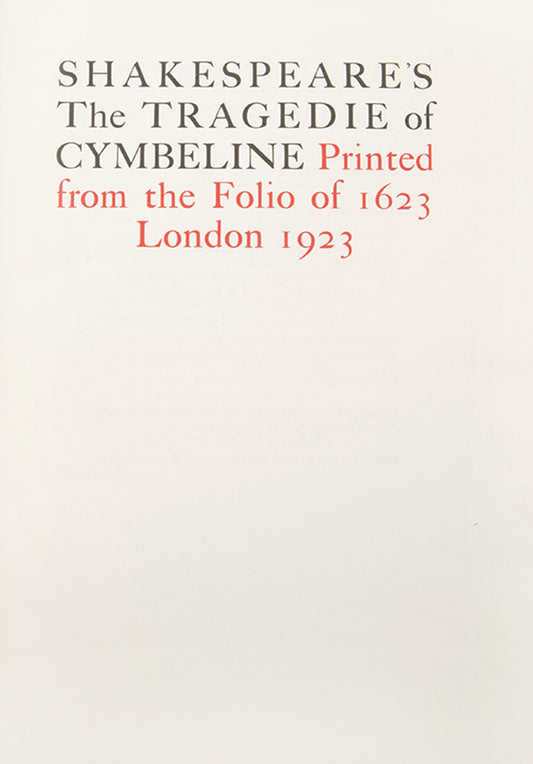 The Tragedie of Cymbeline.