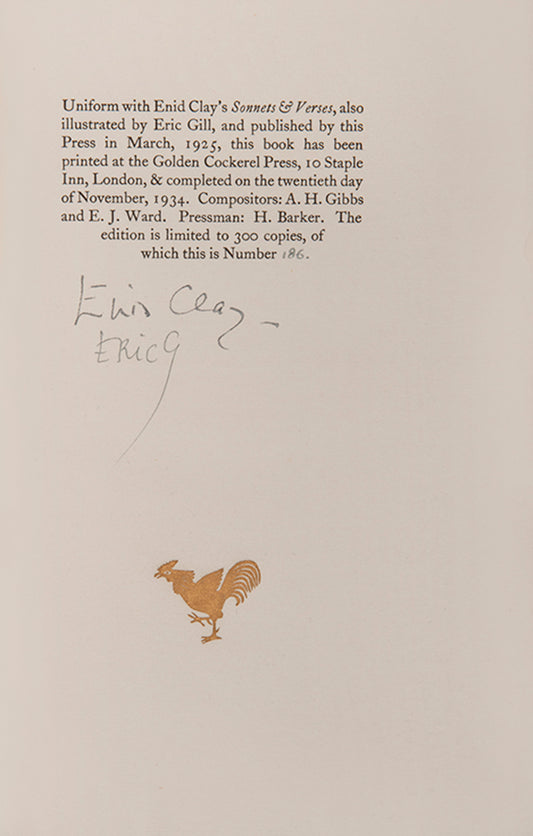 Vendor:[GOLDEN COCKEREL PRESS]; CLAY, Enid; GILL, Eric (illustrator).SoldRegular price £375Regular priceUnit price perSale price £375 -