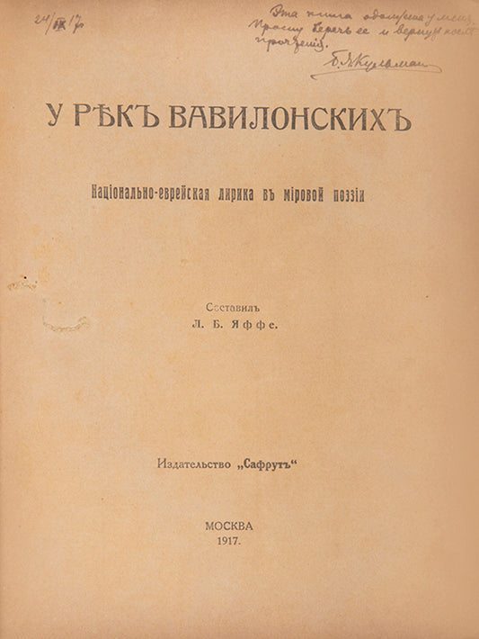 U Rek Vavilonskikh [By the Rivers of Babylon].