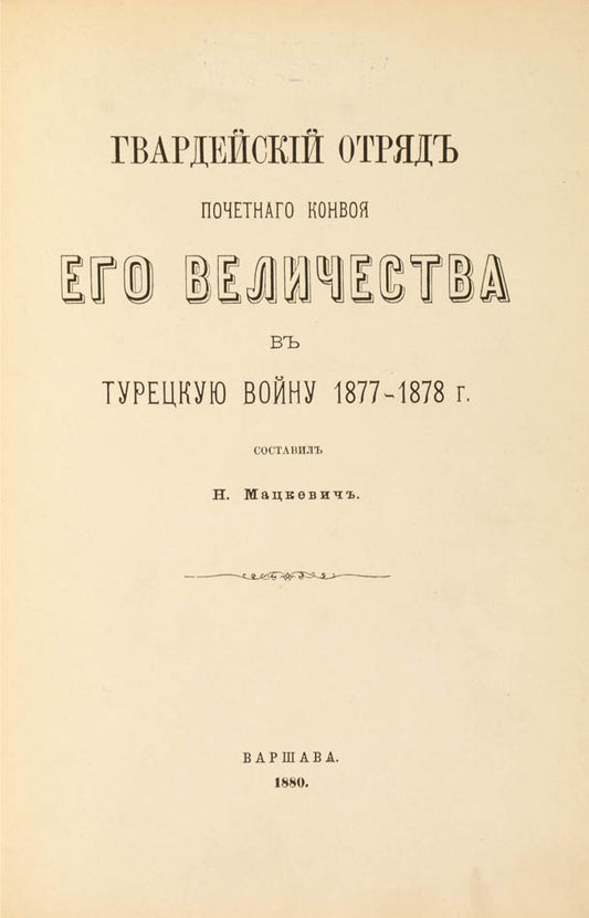 Gvardeiskii otriad pochetnogo konvoia Ego Velichestva v Turetskuyu voinu 1877-1978 gg.