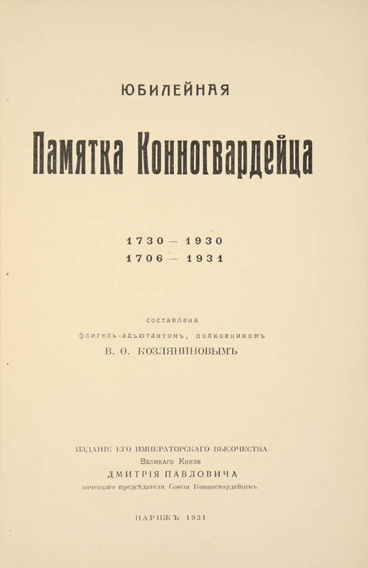 Yubileinaia pamiatka konnogvardeitsa 1706-1931.