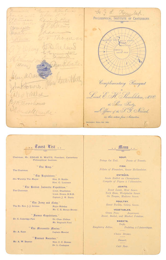 Menus & Souvenir programme from the library of Henry Dunlop,