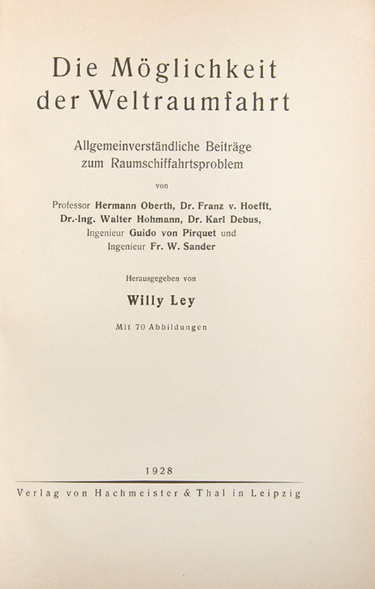 Die Möglichkeit der Weltraumfahrt [The Possibility of Interplanetary Travel].