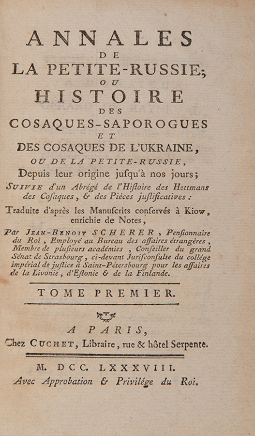 Annales de la Petite-Russie, ou histoire des Cosaques de l'Ukraine,