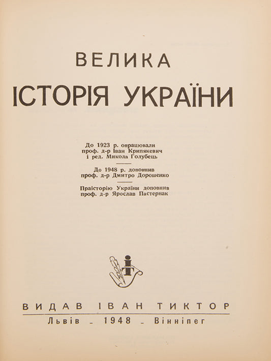 Vendor:KRYPIAKEVYCH, Ivan; HOLUBETS, Mykola; DOROSHENKO, Dmytro; PASTERNAK, Iaroslav.SoldRegular price £1,500Regular priceUnit price perSale price £1,500 -
