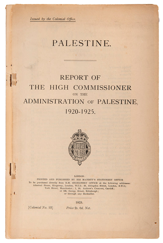 Palestine. Report of The High Commissioner of the Administration of Palestine, 1920-1925.