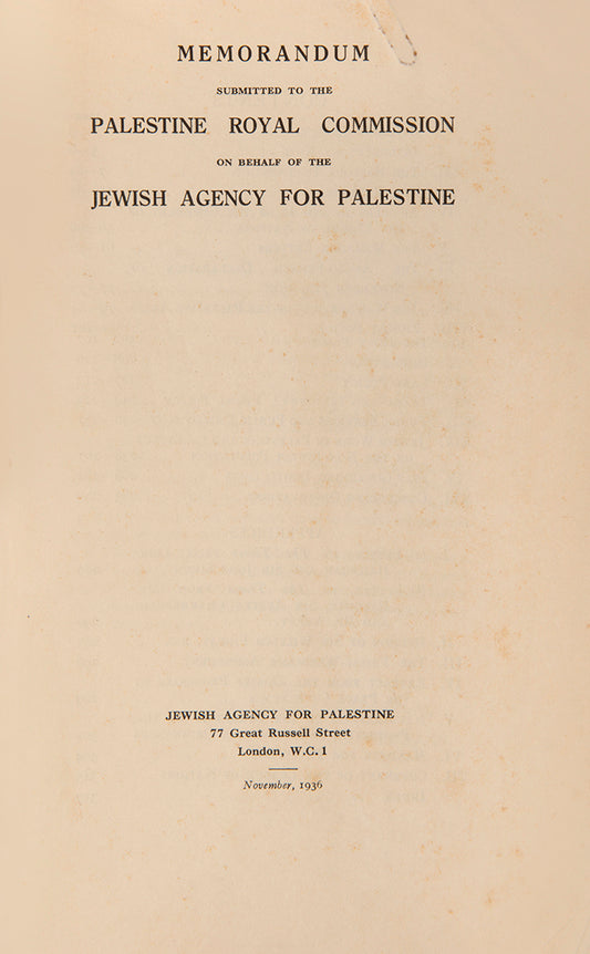 Memorandum Submitted to The Palestine Royal Commission on Behalf of The Jewish Agency for Palestine.