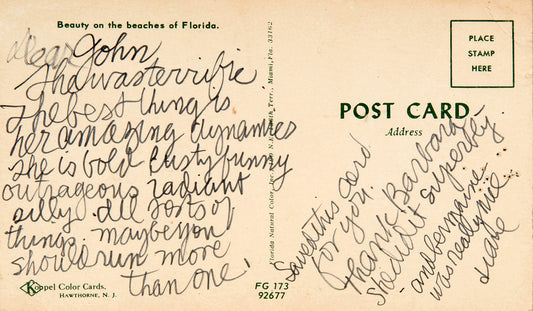 Postcard from Diane Arbus to Art Director John Gerbino.