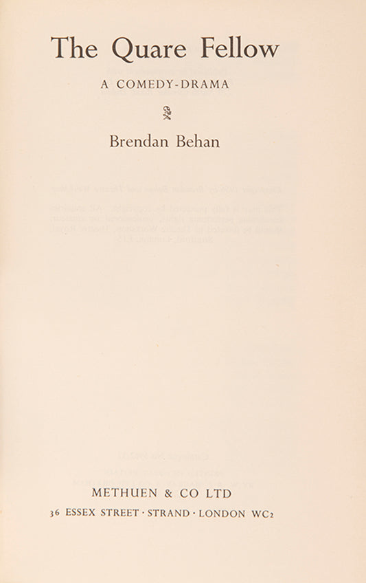 This collection showcases key works from Behan’s brief but brilliant literary career, including striking editions of The Quare Fellow, his debut play set in a grim Irish prison, and The Hostage, a provocative blend of farce, tragedy, and political satire. These rare editions range from first impressions to beautifully bound copies — ideal for collectors of Irish literature and lovers of modern theatre.