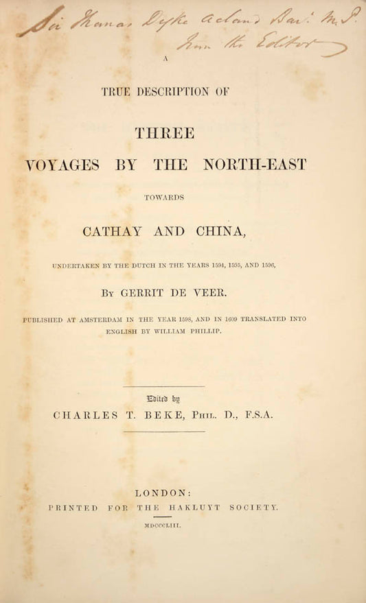 A True Description of three Voyages by the North-East towards Cathay and China,