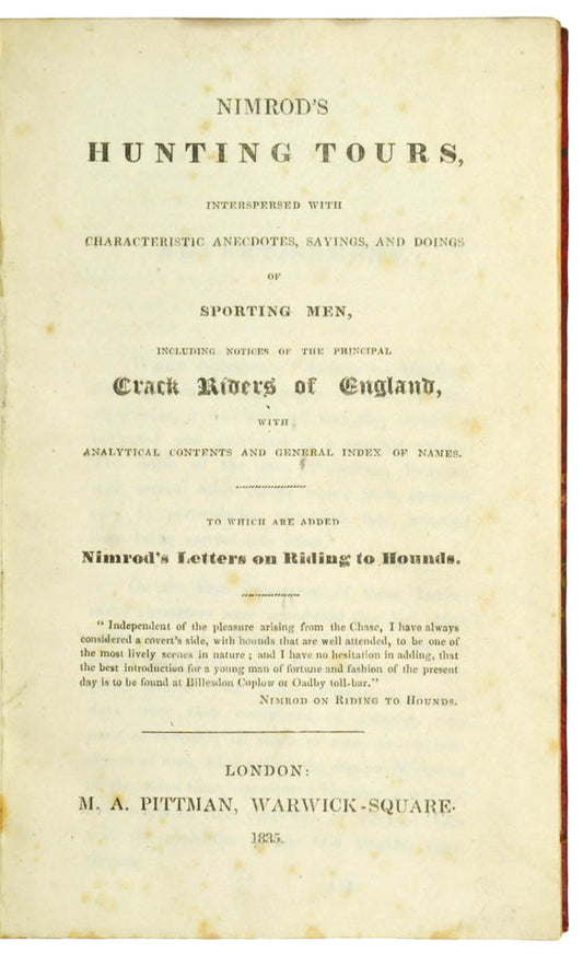 Hunting Tours; Nimrod Abroad; Northern Tour; The Horse and the Hound.