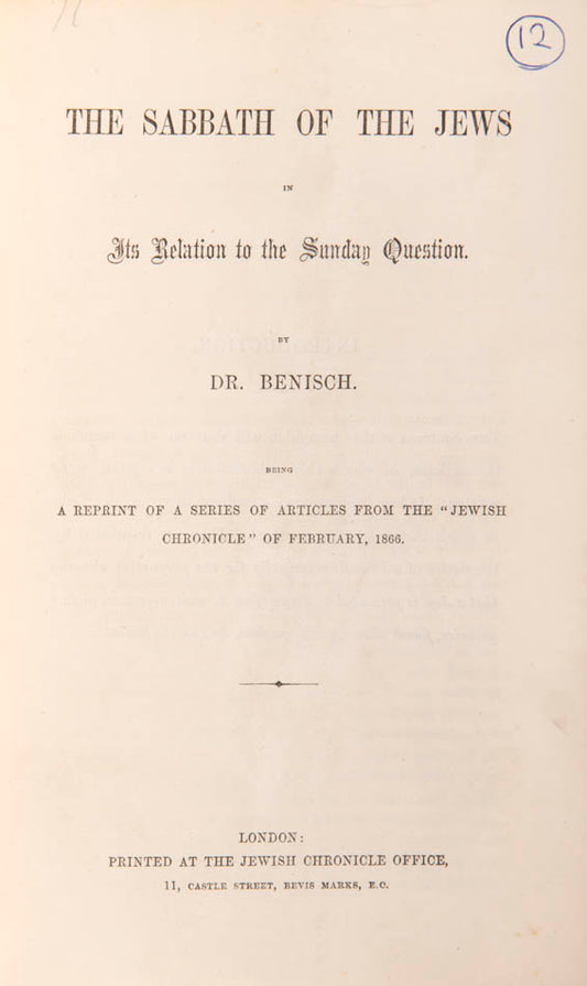 The Sabbath of The Jews in Its Relation to the Sunday Question.