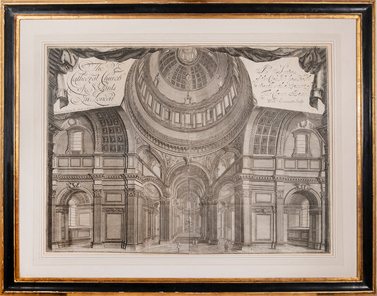 The Cathedral Church of St. Paul's in London. A section of the Cross Isle from North to South with a Prospect of the Choir and Dome
