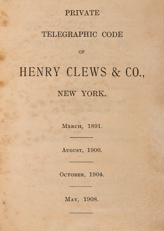 Private Telegraphic Code of Henry Clews & Co.