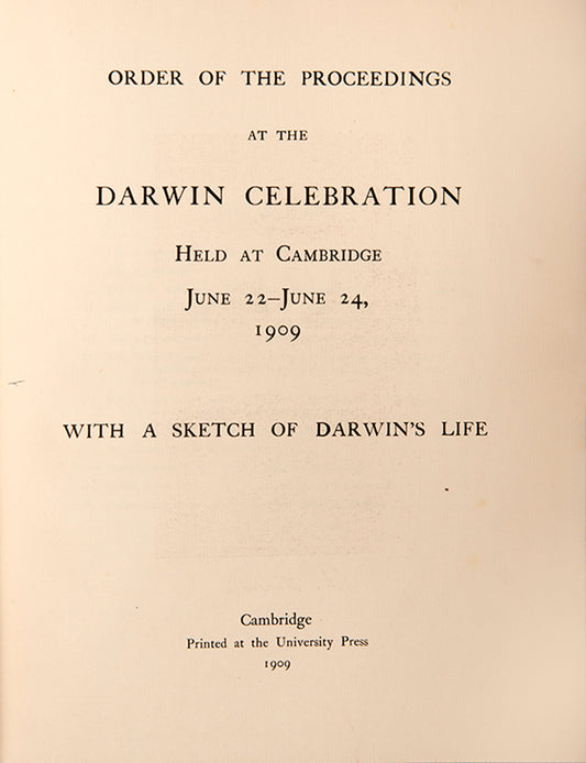 Order of the Proceedings at the Darwin Celebration Held at Cambridge June 22.