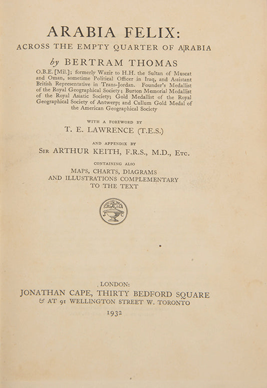 Vendor:THOMAS, Bertram; LAWRENCE, T.E. (foreword).SoldRegular price $1,158 USDRegular priceUnit price perSale price $1,158 USD -