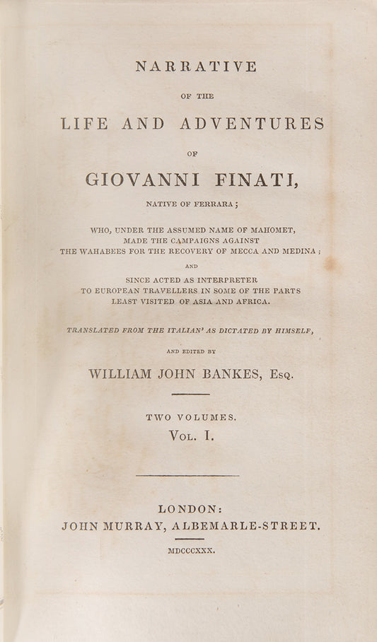 Narrative of the life and adventures of Giovanni Finati,