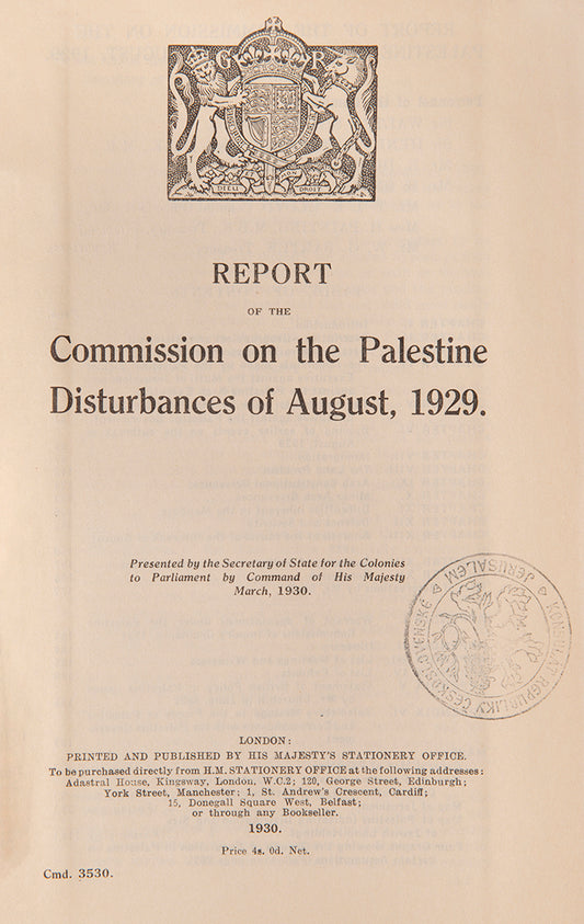 Report of the Commission on the Disturbances of August, 1929.