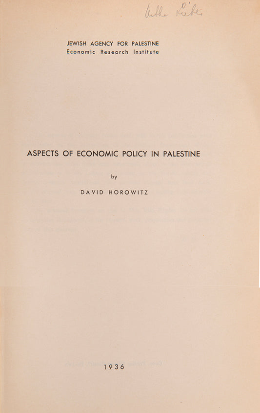 Aspects of Economic Policy in Palestine.