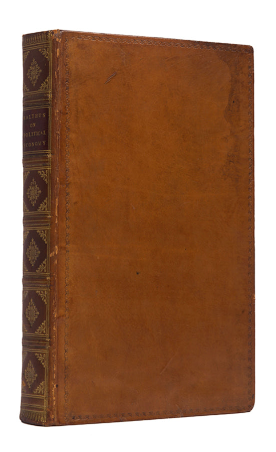 'The central idea of the essay -- and the hub of Malthusian theory -- was a simple one. The population of a community, Malthus, suggested, increases geometrically, while food supplies increased only arithmetically. If the natural increase in population occurs, the food supply becomes insufficient and the size of the population is checked by 'misery' -- that is, the poorest sections of the community suffer disease and famine. The Essay was highly influential in the progress of thought in early nineteenth-century Europe' (PMM).