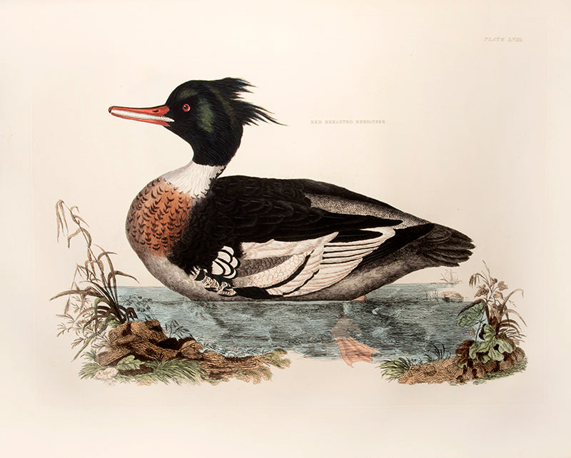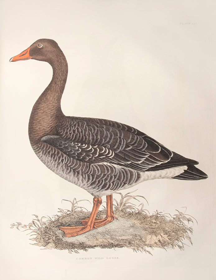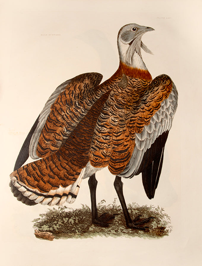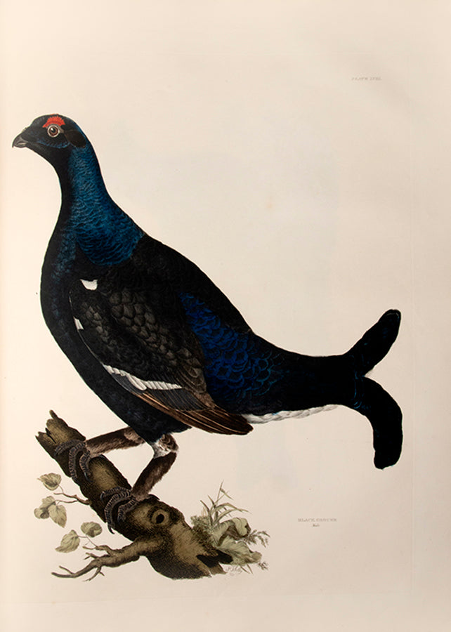 The plates of Illustrations of British Birds were begun in 1821, and issued over the following 13 years in 19 parts, from which the present set (which bear watermarks ranging from 1818 to 1833) was bound up. The irregular intervals in which the work was issued are reflected in the erratic numbering of the plates. A two-volume octavo text was issued but is only rarely found.