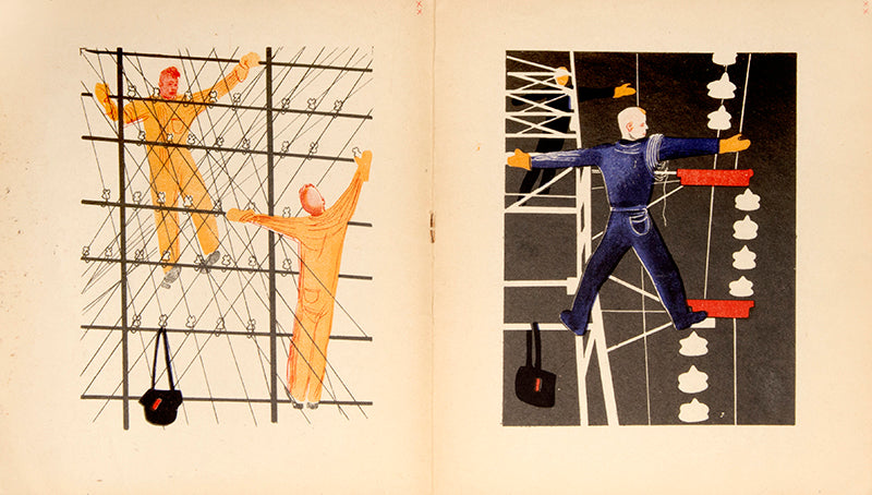 Deineka was a master of Soviet agit-prop art during Stalin's Five Year Plan. He adroitly straddled the line between the Russian avant-garde and Social Realism. He was a prolific illustrator of children's books and Eletromonter, in its treatment of the average electrician as a Socialist hero, may well be his most important work in this field.