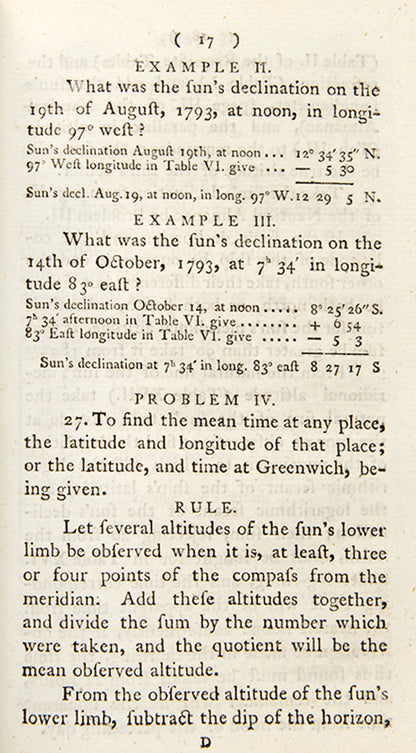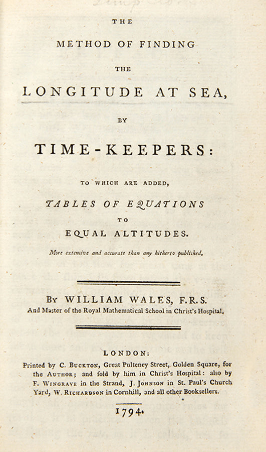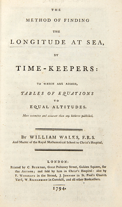 Wales probably had his navigation students at the Royal Mathematical School at Christ's Hospital in mind when he wrote the present work. It explains to beginners what longitude is, how it is derived, and the application of timekeepers to its calculation, and includes numerous practice problems.