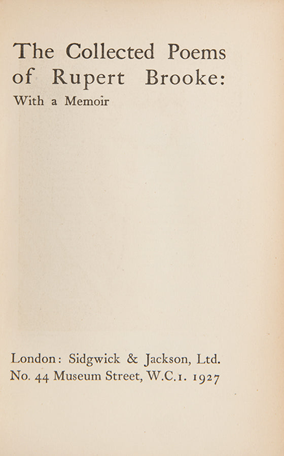 Including Brooke's best remembered poems, Tiare Hahiti and The Soldier, with its famous opening line, 'If I should die, think only this of me: That there's some corner of a foreign field That is for ever England', as well as his longer poem Grantchester, with its equally famous ending: 'oh! yet Stands the Church clock at ten to three? And is there honey still for tea?'