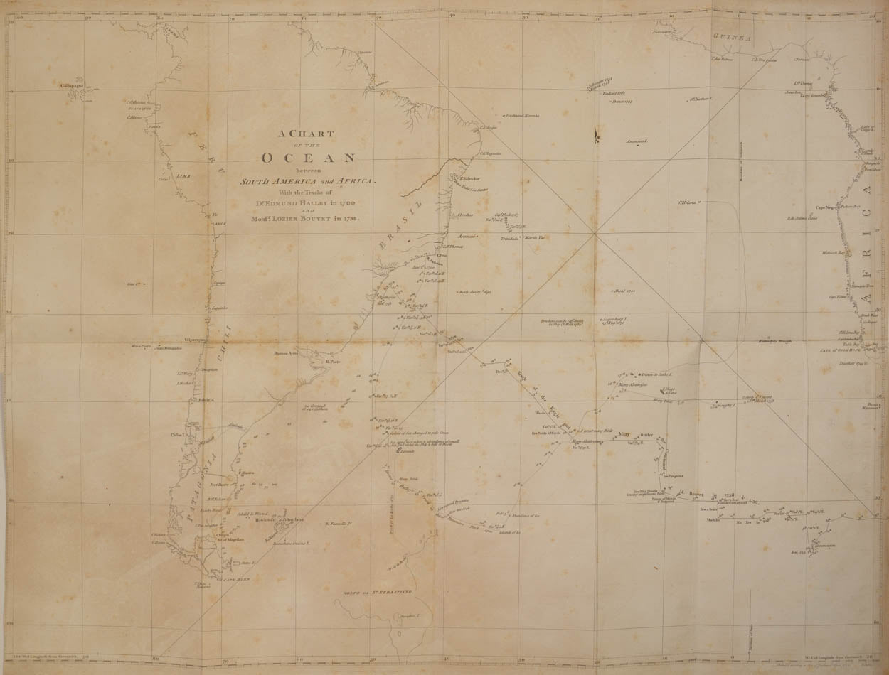 With extra Jefferys chart. The extra chart, by Jefferys, is: A Chart of the Ocean between South America & Africa. With the Tracks of Dr Edmund Halley in 1700 and Monf.r Lozier Bouvet in 1738. Halley and Bouvert outlined tracks in the South Pacific outlining a possible Southern Continent, the potential presence of which greatly concerned Dalrymple.