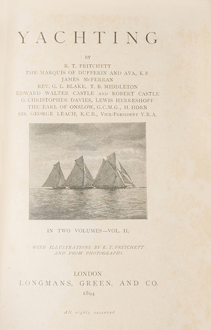 Chapters covers ocean cruising, racing rules, the evolution of the modern racing yacht, yachting in America and New Zealand, and races including the America Cup. Illustrated with numerous photographic plates and in-text designs.