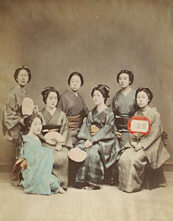 Geisha Girls With Fans.