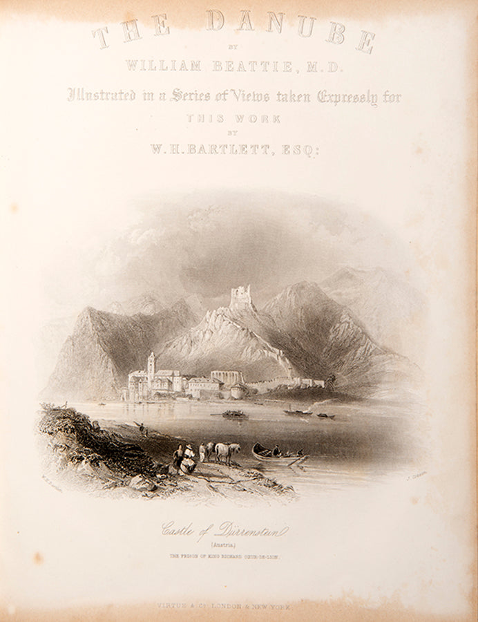 Beattie was a frequent contributor to periodicals, writer of poems, and authored a series of descriptive and historical works, of which this work is one, illustrated by his friend and fellow traveller William Henry Bartlett (1809-1854). Bartlett was well-known for his engravings, particularly of America. Instead of producing his works in oil, as illustrators typically would, he created sepia drawings in the exact size and scale that they would be engraved, giving him much greater artistic control over the finished article.