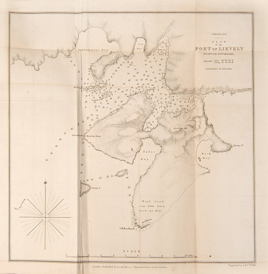 Belcher's voyage was the last officially sent in search of Sir John Franklin, who disappeared during an Arctic expedition in 1845. Belcher, in his narrative, offers no conclusion as to the fate of Franklin, nor to the existence of the Northest Passage to the Pacific. In fact the expedition proved quite unsuccessful, with the loss of four ships icebound in the Wellington Channel.First edition; 2 vols, royal 8vo (25 x 16.5 cm); 4 maps, 3 of which folding, 36 lithograph plates of which 15 chromolithographs or tinted, discreet blind library stamps to titles and frontispieces, discreet reference ticket to pastedown and number to title of vol. I, still nice and clean internally; later half blue morocco, pebbled cloth boards, gilt monogram to upper boards, all edges marbled, library stamps to bottom edge, evidence of shelf marks to spines, nonetheless a very good set; xx, 383; viii, 419pp.