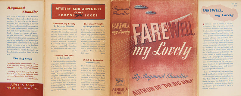 A near-fine first edition copy of Raymond Chandler's second book, one of only 7500 copies printed. Featuring the Los Angeles private eye Philip Marlowe. It was adapted for the screen three times and was also adapted for the stage and radio.First edition, first impression; 8vo; publisher's orange cloth lettered in blue, a little rubbed to extremities, first issue dust-jacket with unclipped price of $2.00, a touch of wear to head and foot of spine but unfaded, toning to endpapers, discreet bookseller's ticket to rear pastedown, a near-fine copy in the iconic dust-jacket.