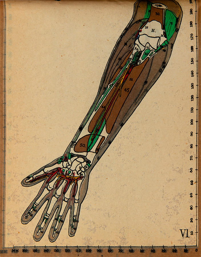 Ballière's Synthetic Anatomy was designed as a learning aid for medical students and was released in 14 parts (1-9 and 9a-13) between 1927 and the late 1930s. Each fascicle and the cloth binder could be purchased separately for 3 shillings, 6 pence each, or the whole set together for 52 shillings, six pence. When the first parts appeared it was described by the British Journal of Surgery as 'the best and most convenient substitute for the body'.