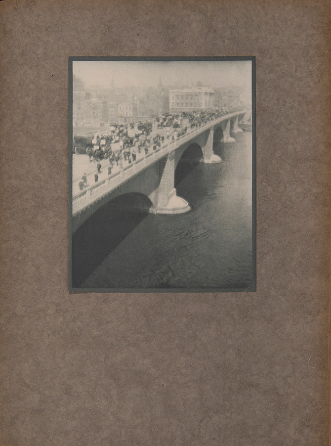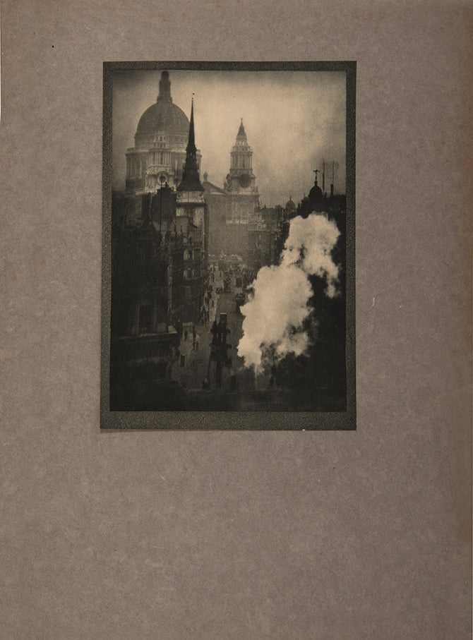 A member of Alfred Stieglitz's Photo-Secession circle, Coburn perhaps learnt from Stieglitz the effectiveness of high quality photo-mechanical reproduction as an expressive vehicle for artist-photographers. He was the most important American photographer of his generation to expend significant energy on illustrating books. Amongst his output, Coburn published two books of identical design, one featuring London, the other New York. These exemplify the concern of the more advanced pictorialists with modern subjects, namely the twentieth century city, a shift in attitude that triggered the final push to photographic modernism.