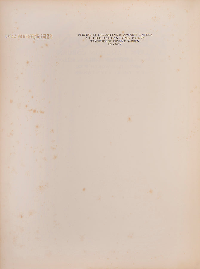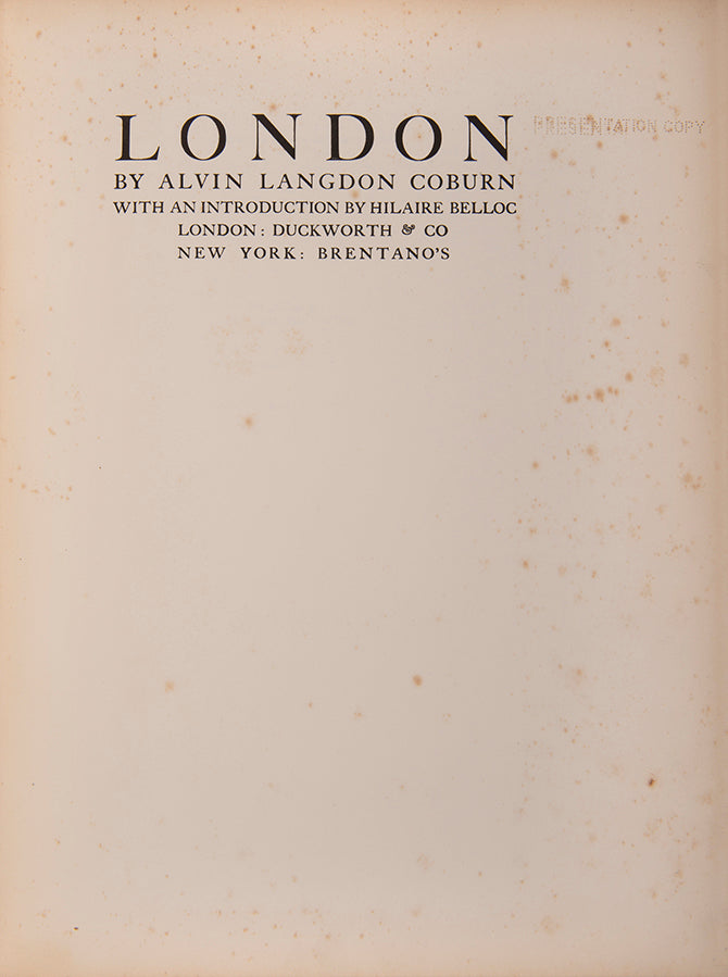 First edition, folio (415 x 315 mm, 16¼ x 12½ in); introduction by Hilaire Belloc, some spotting to text pages, publisher's perforated stamp stating 'presentation copy' on title-page, 20 hand-pulled warm-toned gravures from plates prepared by Coburn and printed under his supervision at the Ballantyne Press, mounted on grey card; contemporary green morocco-backed grey boards with gilt lettering on front, restoration to spine, wear to extremities; xxi, [iii]]pp.