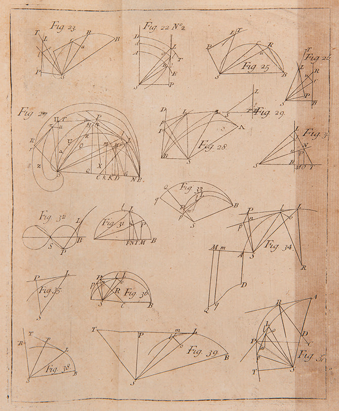 First edition, very rare in commerce, of Maclaurin's first book, dedicated to Newton and bearing his imprimatur as president of the Royal Society. Maclaurin is best known for his Treatise of Fluxions (1742), 'the earliest logical and systematic publication of the Newtonian methods. It stood as a model of rigor until the appearance of Cauchy's Cours d'Analyse in 1821' (DSB).Maclaurin, who taught at Aberdeen, was brought to the attention of Newton's circle in London early in his career when he published two papers on the construction and mensuration of curves. 'He was admitted to membership in the Royal Society (1719), and often visited Newton, who encouraged him to publish the rest of his work on the description of curves. MacLaurin did so in his first major book, the Geometria organica, which was published under Newton's imprimatur in 1720. In its dedication and preface MacLaurin praises his patron Newton for having determined the proper relationship between mathematics and natural philosophy, and he defends and justifies the pursuit of pure geometry' (Oxford Dictionary of National Biography).