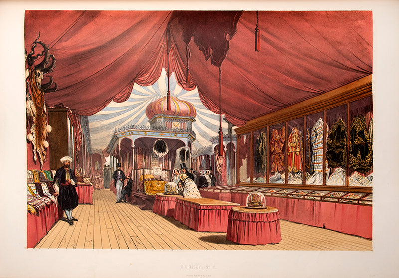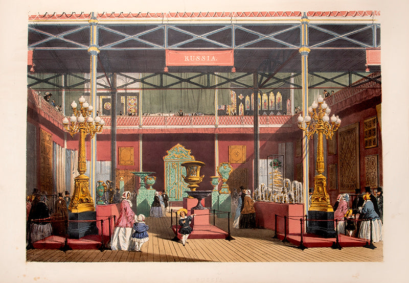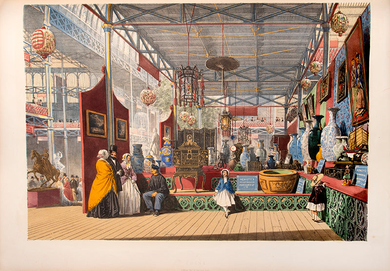 The Great Exhibition, housed within the 'Crystal Palace', embodied Prince Albert's vision to display the wonders of industry from around the world.This highly detailed and colourful sequence of images was published as a pictorial record of the hugely successful Great Exhibition of 1851, which ran in London's Hyde Park between May and October of that year. Originally conceived by the Royal Society for the Encouragement of Arts, Manufactures and Commerce (whose most famous patron was Prince Albert) the exhibition set out to display the staggering progress that had been achieved in all of the Society's disciplines. The exhibition building itself was the source of worldwide acclaim: the famous 'Crystal Palace' designed by Joseph Paxton, and built in cast-iron and plate-glass, stretched symbolically 1,851 feet in length and rose to 128 feet in the air.