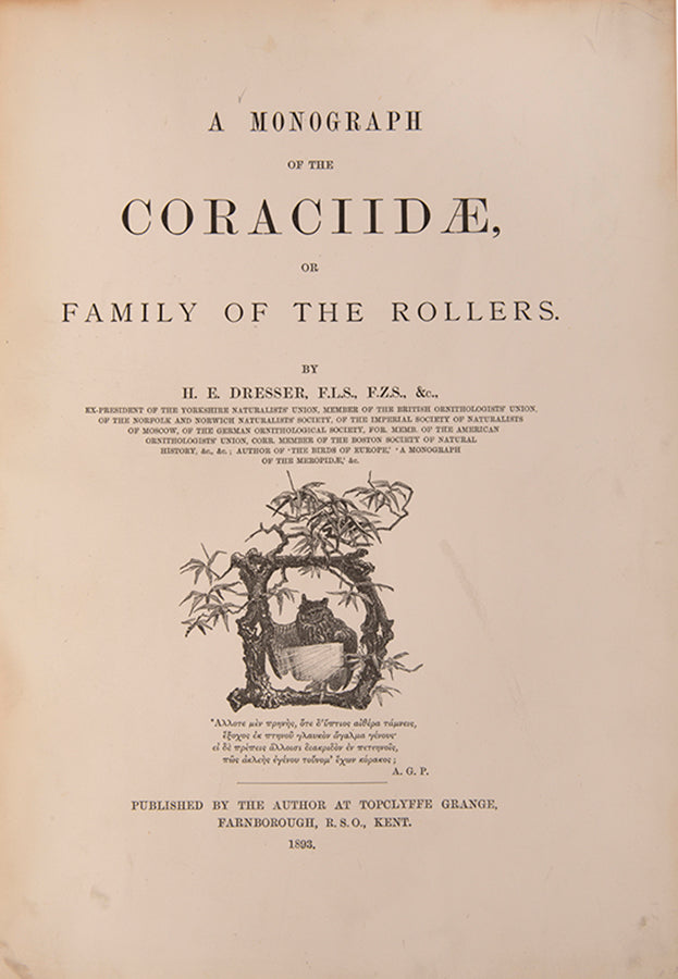 Keulemans was the last of the great bird illustrators. This beautifully illustrated work was intended by the author as a companion to his Meropidae. The great value of Keulemans' work as an ornithological draughtsman lay in his sureness of design of the plate and his accuracy in portraying the birds themselves. The bird figures were carefully drawn and executed down to the last scales on the feet. The feathering was neatly delineated with the different plumes receiving sympathetic treatment, the fine soft underplumage and the large flight feathers being equally well drawn.
