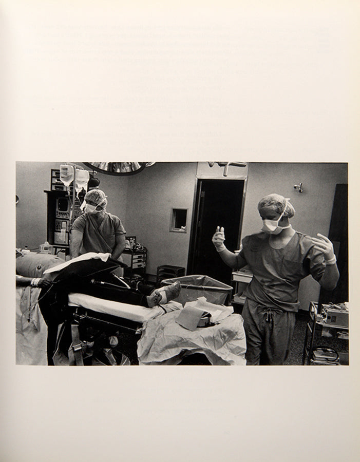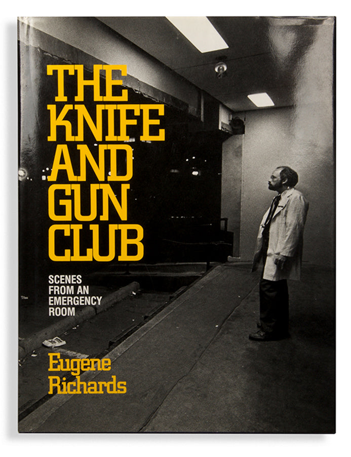 The Knife and Gun Club comprises Eugene Richard's photographs of the emergency room at Denver General Hospital, accompanied by texts from individuals who work there.First edition, signed in black pen on front free endpaper; 4to (266 x 202 mm, 10½ x 8 in); black & white photographs; plain endpapers, navy cloth-covered boards, titles stamped on spine in silver and to upper side in blind, photo-illustrated dust jacket, text in yellow and white, minor fading to spine, minor wear to edges, lightly scratched, fine in a near-fine dust-jacket; 240pp.
