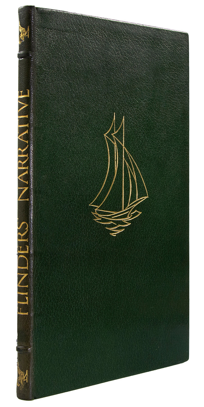 First edition, number 9 of 100 specially bound copies, from an overall limitation of 750; folio (310 x 190 mm.); printed in dark green throughout, wood-engraved frontispiece, title vignette, 6 chapter headings and device, all by John Buckland-Wright, one full-page map of the east coast of Australia; full green morocco, gilt, by Sangorski & Sutcliffe, top edge gilt, others uncut, spine very slightly lightened, but otherwise a very good copy; housed in original cloth slip-case, lightly marked.