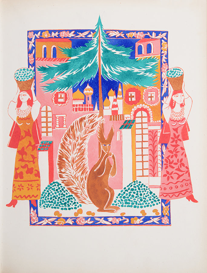 Natalia Goncharova's great-aunt Natalia Nikolaevna Goncharova was married to the poet Alexander Pushkin, who originally wrote this text (based on a traditional Russian folk tale) in 1831. This book brings together the charm of Pushkin's lyricism and the beauty of Goncharova's colourful and sympathetic designs. The intricate floral motifs are redolent of peasant embroidery which Goncharova was surrounded by in her childhood. As Bilibin said (who also liked including rich fabrics in his work) there is a certain poetry in Russian textile design.