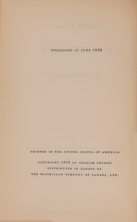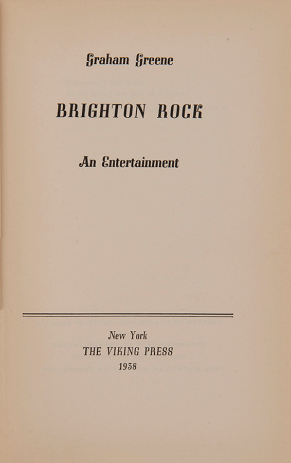 The first edition, published in New York, of Greene's (1904-1991) classic murder-thriller Brighton Rock. The original pictorial dustjacket with design by George Salter.
