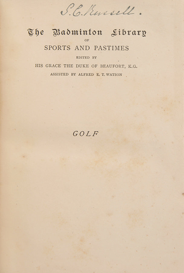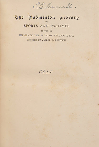 Horace Hutchinson's classic history and guide to the game of golf, published as part of The Badminton Library series of sporting titles. Contributors include the future Prime Minister Arthur Balfour M.P., and the Scottish novelist Andrew Lang, both keen amateur golfers.