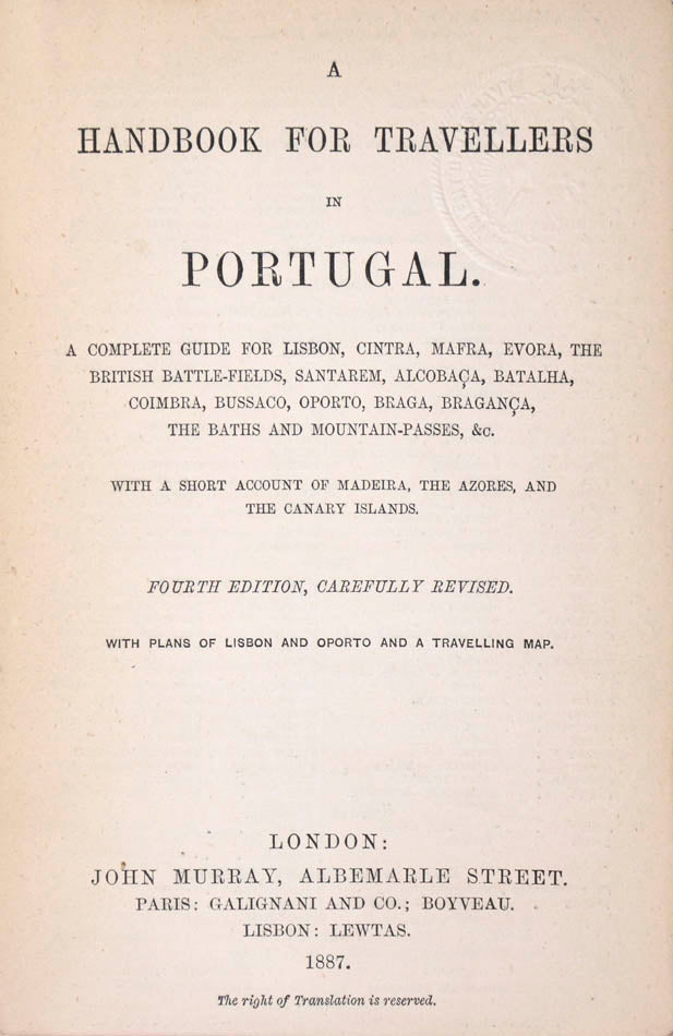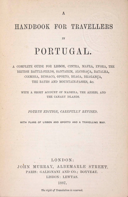 A Complete Guide for Lisbon, Cintra, Mafra, Evora, The British Battlefields, Santarem, Alcobaça, Batalha, Coimbra, Bussaco, Opporto, Braga, Bragança, the Baths and mountain-passes, &c. With a short account of Madeira, the Azores, and the Canary Islands.