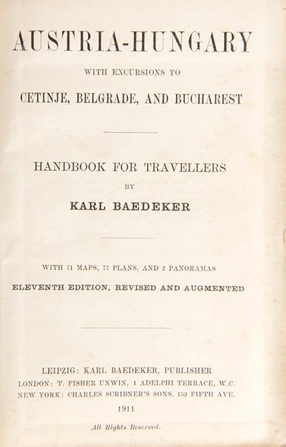 Eleventh edition. xxii, 602pp, 71 maps, 77 plans, and 2 panorama; publisher's red cloth gilt, an excellent copy.